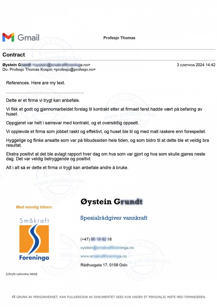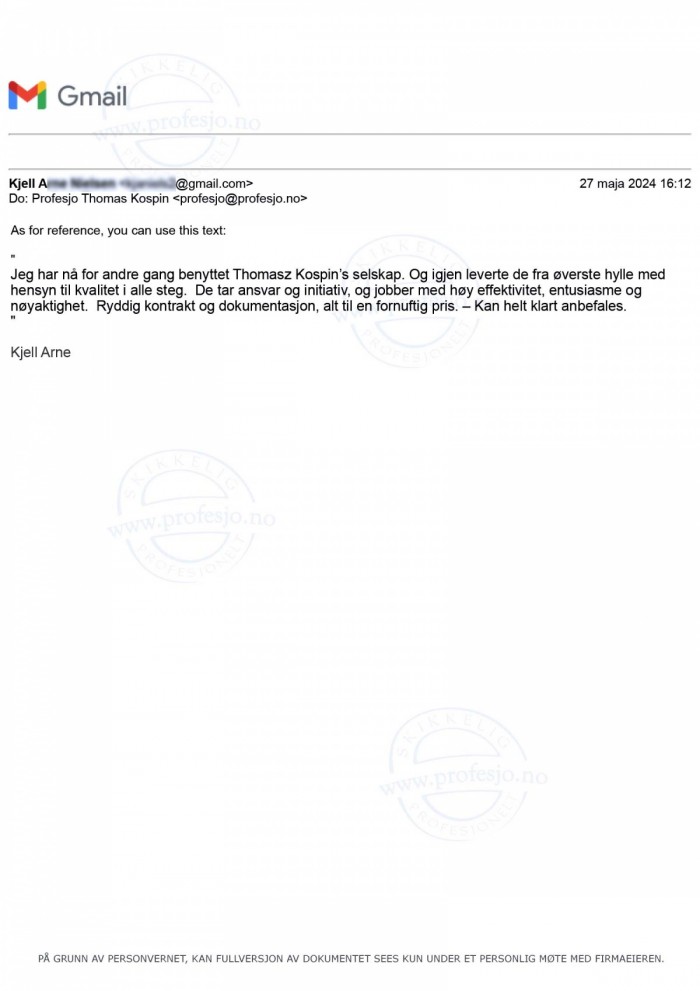 Ryddig kontrakt og dokumentasjon, alt til en fornuftig pris. – Kan helt klart anbefales.